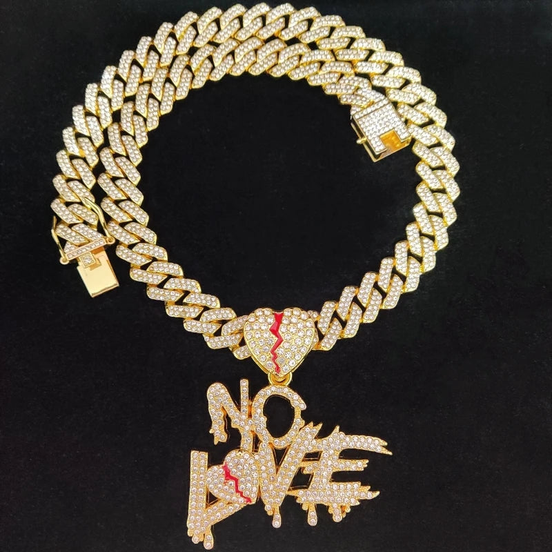 CHAÎNE CUBAN "NO LOVE" coeur brisé 50cm